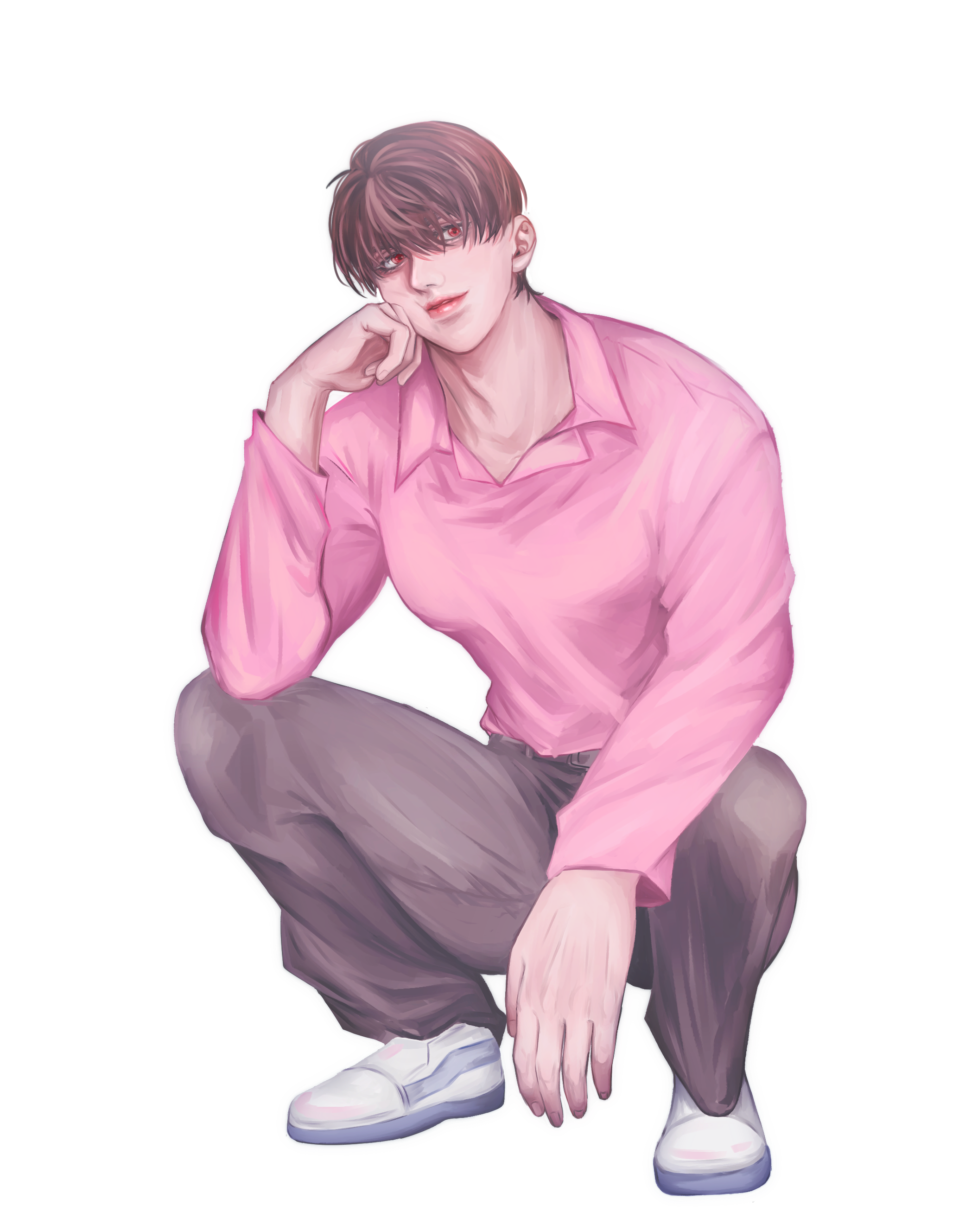 - 붉은기가 도는 흰 피부에 갈색 머리칼, 적안